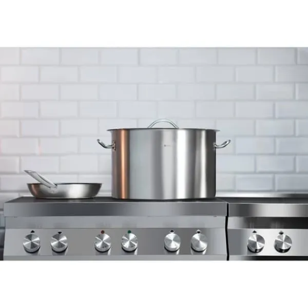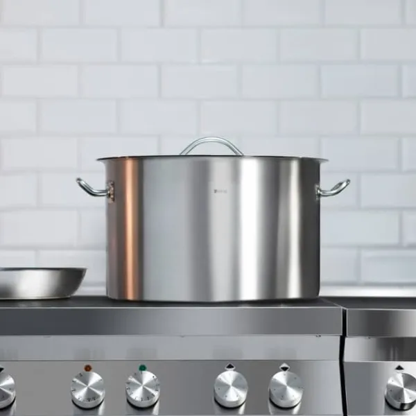 Kokkärlet och locket är gjorda av extra slitstarkt, rostfritt stål, speciellt konstruerat för professionell användning. Grytan har en lång hållbarhet genom den noggranna tillverkningen med förstklassiga material. Den höga kvaliteten kombineras med elegant design. Materialet absorberar ingen lukt, är särskilt hygieniskt och ofarligt för hälsan, vilket är viktigt för tillbehör som kommer i kontakt med livsmedel och används för livsmedelsproduktion.