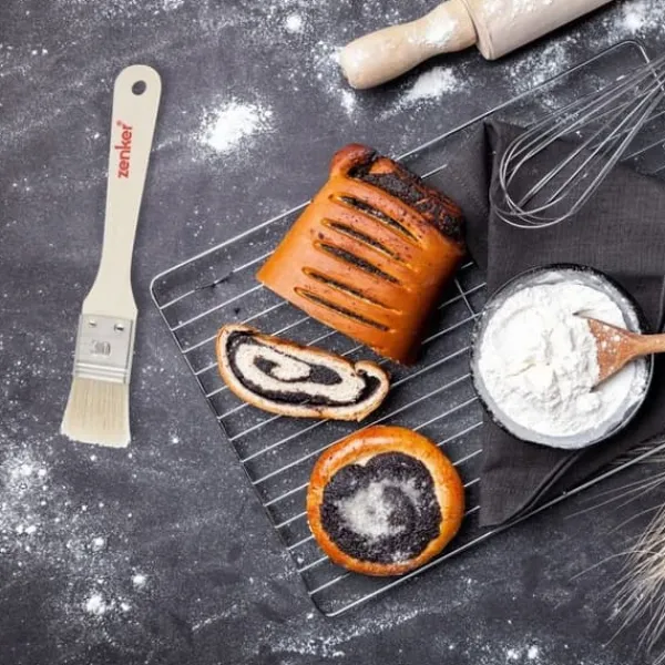 BESKRIVNING : Bakpensel i trä med naturliga svinborst DET LILLA + : Denna kökspensel är användbar för att täcka dina bakverk med äggula KOMPOSITION : Poppelträ, svinborst DIMENSIONER : 19 cm INNEHÅLL : 1 bakpensel Bakpenseln är ett mycket användbart verktyg för att olja en kakform, för att täcka ett bakverk med socker, för att pensla en croissant med ägg eller mjölk, osv. Med denna bakpensel kan du skapa vackra glasyrer, överraskande bakverk och mycket mer. Zenker är ett märke som tillhör Fackelmann Brands-gruppen och erbjuder ett brett utbud av bakverktyg och kakformar. När det kommer till bakverktyg gör Zenker ett starkt intryck genom att erbjuda både förberedelse- och dekoreringsverktyg för erfarna bagare. När det gäller kakformar är det ett banbrytande märke som erbjuder innovationer som silikonav och glasfiberformar som inte kräver något fett och ger otroliga bakresultat. Zenker har därför ett brett utbud av tillbehör och verktyg för att stödja dig i dina vardagliga recept, men också för exceptionella evenemang som fester, födelsedagar, bröllop, osv.