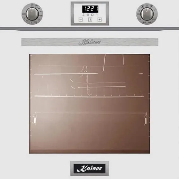 Upptäck hela kökslinjen Kaiser EG 6374 med elektrisk ugn och gasspis KCG 6387. Med en finish i vitt glas och rostfritt stål erbjuder den en elektrisk grill, cirkulerande värme och självrengöringsfunktion med pyrolys för optimal komfort i köket.
