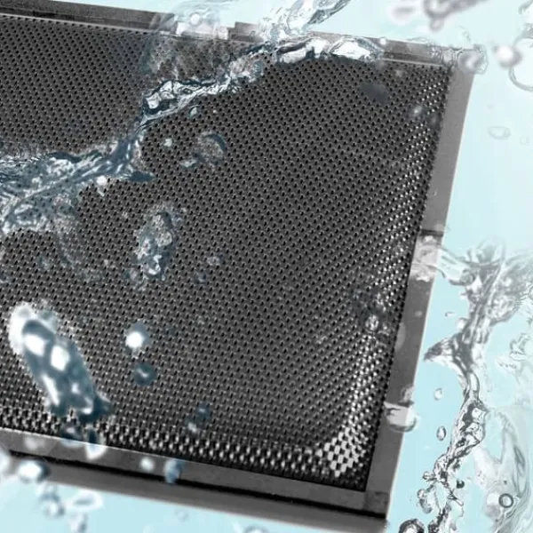 Filtret behöver bara rengöras en gång var 4-5:e vecka. Rengöringen är enkel eftersom aluminiumfiltretkan diskas under rinnande vatten!