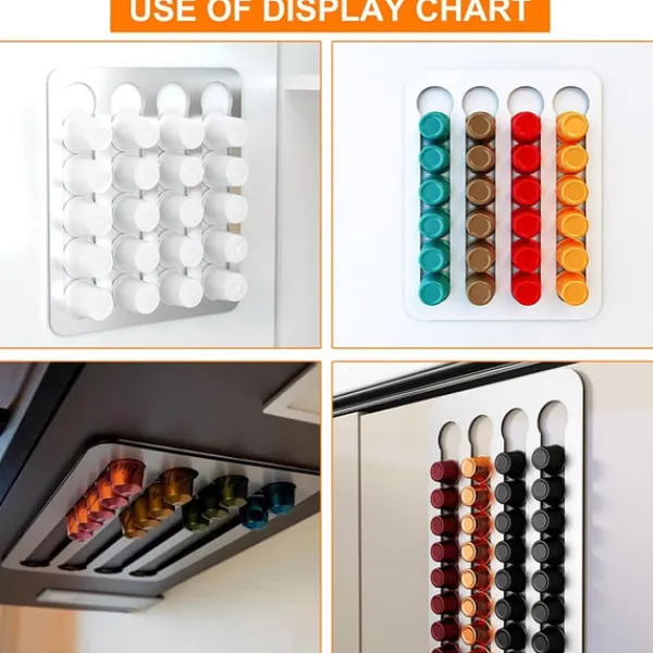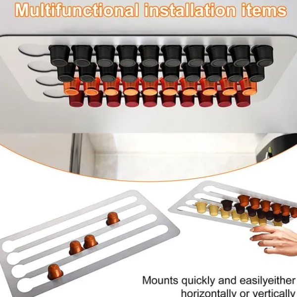 Utrymmesbesparande design: Få ut mer av din köksyta med denna kompakta och stilrena kaffekapselhållare. Den smala designen gör den perfekt för trånga utrymmen, samtidigt som den rymmer flera Nespresso-kapslar på ett organiserat sätt.