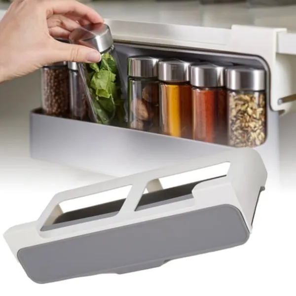 Detta hängande kryddställ är designat med stor kapacitet för att hålla flera kryddflaskor, vilket gör det lätt att komma åt och använda. Den utdragbara designen möjliggör bekväm hämtning utan behov av borrning, vilket säkerställer enkel installation. Dessutom hjälper kryddstället till att spara utrymme i köket, vilket ger extra lagringskapacitet. Placeringsstabilitetsfunktionen säkerställer att flaskor och burkar förblir säkert på plats utan risk att falla. Detta hängande kryddställ är tillverkat av slitstarkt plastmaterial och är slitstarkt, hållbart och har en stark bärförmåga.