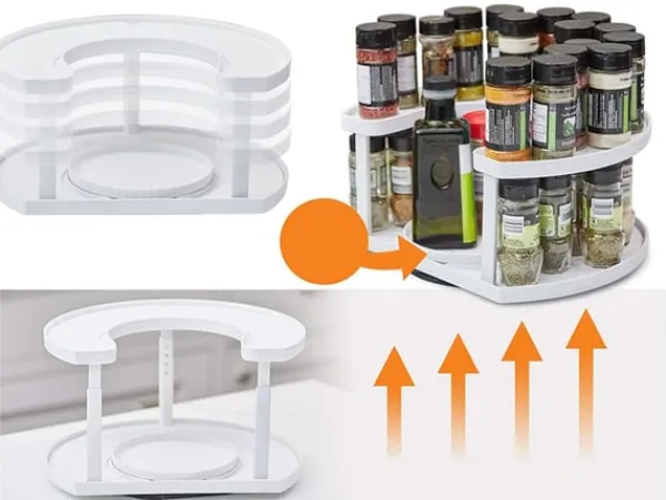 Organisatörenroterar kring sin egen axel,dessutom kan hyllan i mitten av hyllan också roteras som önskat.