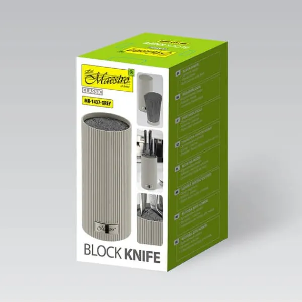 Elegant, funktionell och ergonomisk –Maestro knivställär den perfekta lösningen för alla kök. Tack vare sin moderna design och mångsidiga konstruktion kommer den att fungera i en mängd olika interiörer, vilket ger säker och bekväm förvaring av dina knivar.