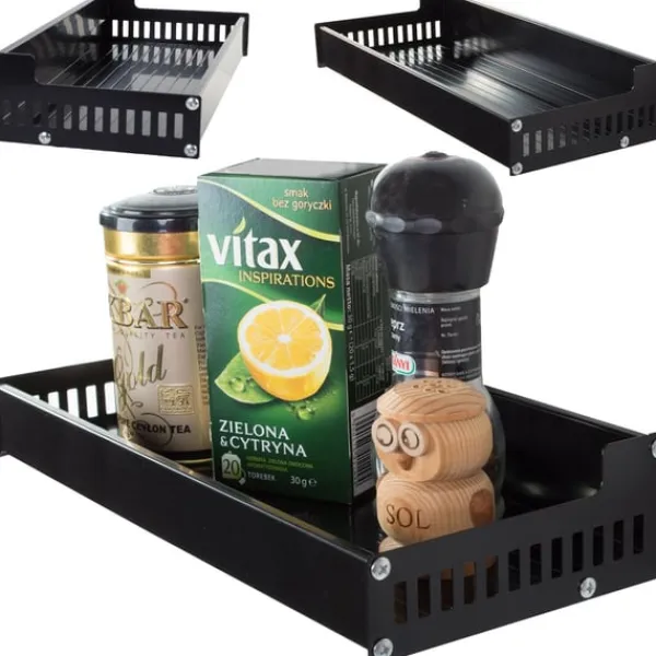 Denna kökshylla kombinerar funktionalitet och stil i ett smart förvaringsalternativ. Med sin stabila konstruktion i pulverlackerad aluminium erbjuder den en slitstark lösning som passar lika bra i köket som i badrum, sovrum eller arbetsrum. Den svarta ytan ger ett modernt uttryck och smälter fint in i både industriella och mer klassiska inredningsstilar.