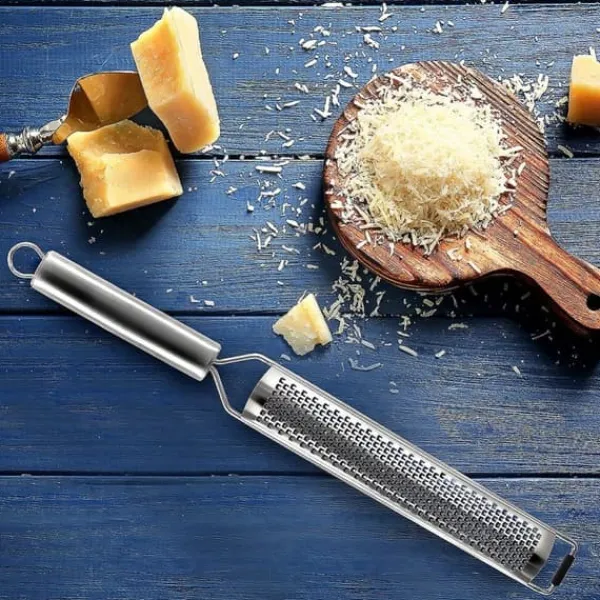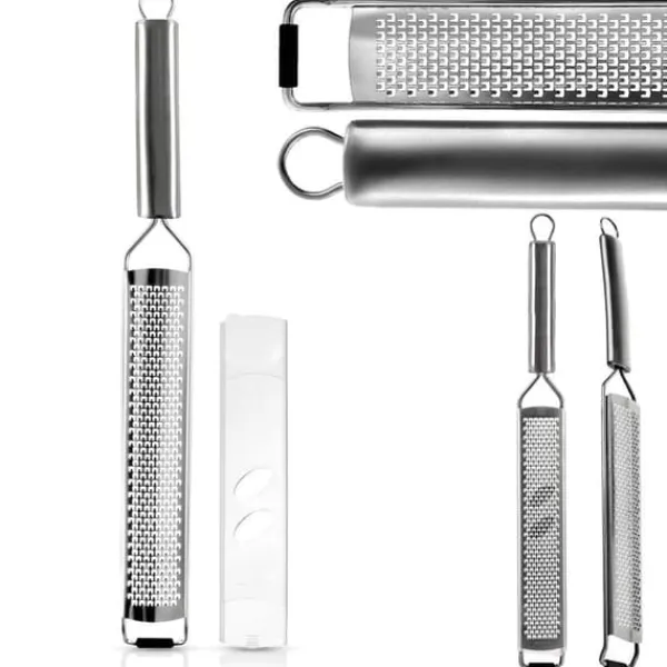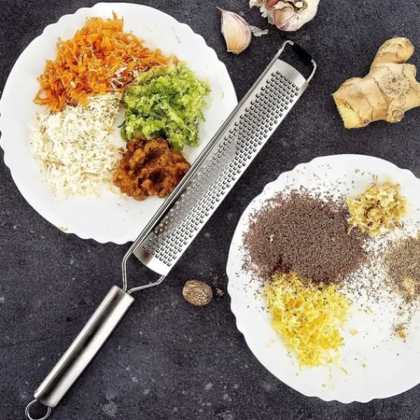 - MULTIPLAN– Perfekt för att riva hård ost, vitlök, nötter, samt att riva citron- eller apelsinskal, choklad och kryddor som kanel, ingefära eller muskotnöt.