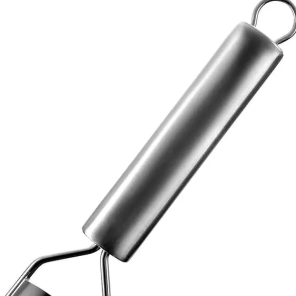 - STÅL– Tillverkad av rostfritt stål. Den nedre delen är avslutad med ett gummiskydd, så den kan användas i grytor och kastruller utan att repa ytan.