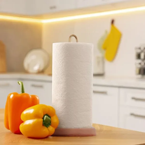 Håll ditt kök organiserat och stilrent med denna fyrkantiga köksrullshållare i trä, designad för praktisk, fristående förvaring av standard kökspappersrullar. Den robusta konstruktionen kombinerar dekorativt trä och mässing, medan en bred bas och skumgummifötter säkerställer stabilitet och skyddar dina ytor.