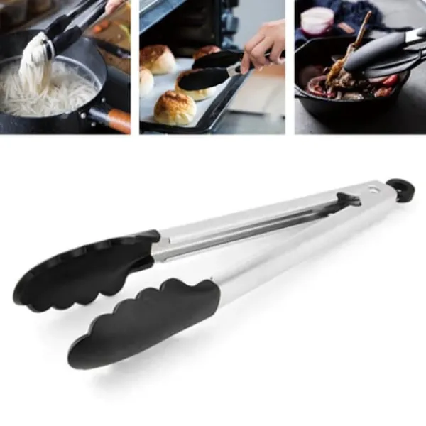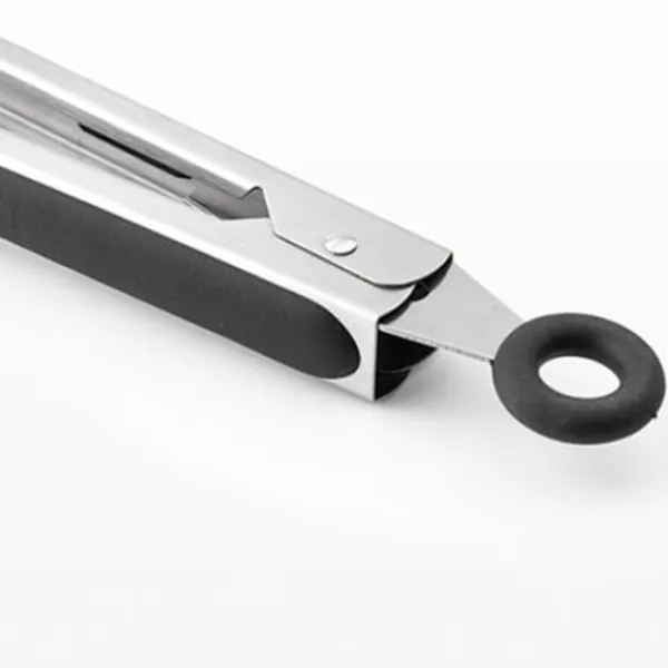 Denna koktång är designad för bekvämlighet och har en design med hängande hål i silikonring, vilket möjliggör enkel förvaring utan att ta upp mycket plats. Den infällbara funktionen inkluderar en låsdesign för enkel förvaring, och när den är upplåst kan tången öppnas fritt inom 30 grader.