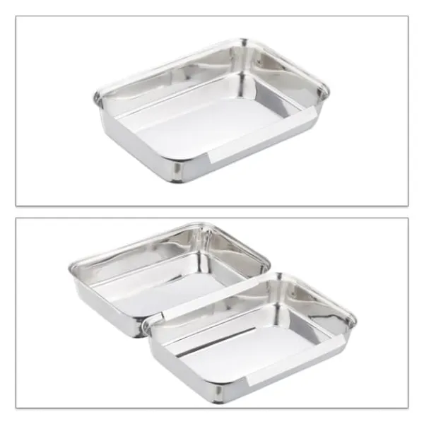 Detta set med paneringsbrickor i rostfritt stål är perfekt för smidig och kladdfri matlagning, så att du enkelt kan panera eller bröa kött, fisk och grönsaker. Brickorna kan enkelt hakas ihop, vilket skapar en effektiv arbetsstation och minimerar spill, medan de medföljande tången gör doppning och panering enkel. Hållbart, rostfritt och diskmaskinssäkert – detta set är idealiskt för både hemmakockar och matentusiaster.