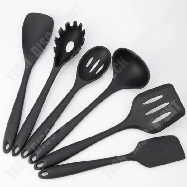 Upptäck TD®-setet med svarta silikonredskap för köket, som inkluderar 11 delar: stekspade, sked, slev och mer. Utformade för professionell användning, kombinerar dessa non-stick redskap funktionalitet med en modern stil.