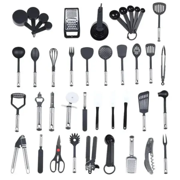 Komplett 40-delars setInnehåller bland annat soppslev, gafflar, stekspadar, visp, konservöppnare, sax, ingefärsrivare, vitlökspress samt måttskedar och måttkoppar så att du alltid har rätt verktyg nära till hands.
