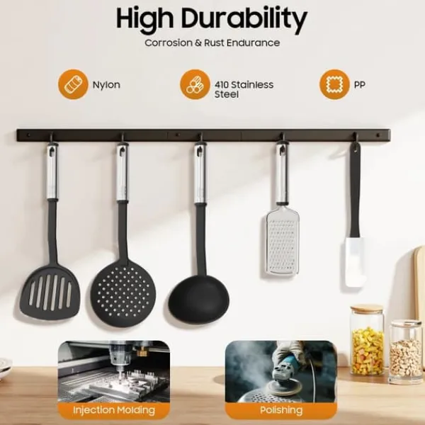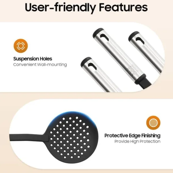 Skonsamt mot kokkärlNylonhuvuden skyddar non-stick-beläggningar och minskar risken för repor, vilket förlänger livslängden på pannor och kastruller.