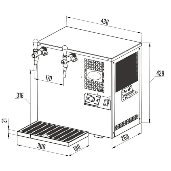 Kolsyremaskin, bubbelvatten maskin, vattendispenser, carbonator – AS-45, 2 tappkranar Kännetecken •Tillverkning av kylt sodavatten genom att blanda dricksvatten och CO₂ •Ger 40-50 liter välkylt sodavatten på en timme •Enheten kan användas på kontoret, fabriken eller i hushållet •Kylteknik är 45 % effektivare än den elektriska energiförbrukningen •AS-45 är tillverkad av högkvalitativt stål •Lätt att knacka tack vare högkvalitativa kranar •Rostfritt droppbricka i stål säkerställer hygienisk komfort •Materialen uppfyller de högsta hygienkraven AS-45 vattendispensern är en professionell enhet för att producera kylt sodavatten. Att blanda dricksvatten och CO₂ ger 40-50 liter välkylt sodavatten på en timme. Enheten kan användas på kontoret, fabriken eller i hushållet. Kyltekniken är 45 % effektivare än elförbrukningen. AS-45 vattendispenser är gjord av högkvalitativt stål. Enkel tappning garanteras tack vare högkvalitativa kranar. En droppbricka av rostfritt stål säkerställer hygienisk komfort. Materialen som används uppfyller de högsta hygienkraven och garanterar en lång livslängd för sodavattendispensern. Medföljer en droppbricka och kranar. Dryckesanslutningarna är vatten 3/8” och dryck 3/8”. CO2-anslutningen är 5/16. Måtten (BxHxD) är 470 x 430 x 270 mm och vikten är 24 kg. Upplev komforten och lyxen med färsk, kyld mat Sodavatten när som helst och var som helst. Beställ läskmaskinen, dispensern – AS-45, 2-pipe nu och njut av uppfriskande drinkar när som helst.