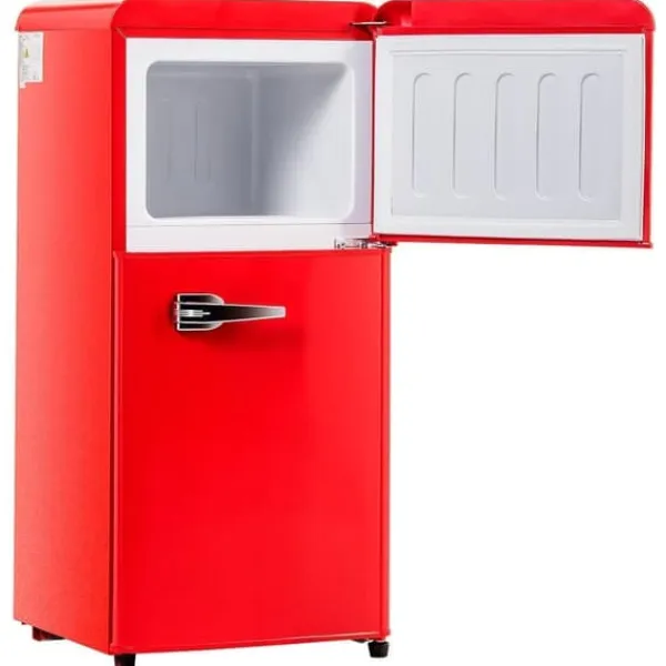 Dieser Retro-Doppeltür-Kühlschrank in Premium-Rot kombiniert stilvolles Design mit praktischen Funktionen. Mit einer Gesamtvolumen von 60 Litern, darunter ein 22L Gefrierfach und ein 38L Kühlfach, eignet er sich perfekt für begrenzte Räume oder als Backup-Kühlschrank. Die sieben Temperatureinstellungen und die LED-Beleuchtung machen ihn zu einem flexiblen und energieeffizienten Haushaltsgerät.