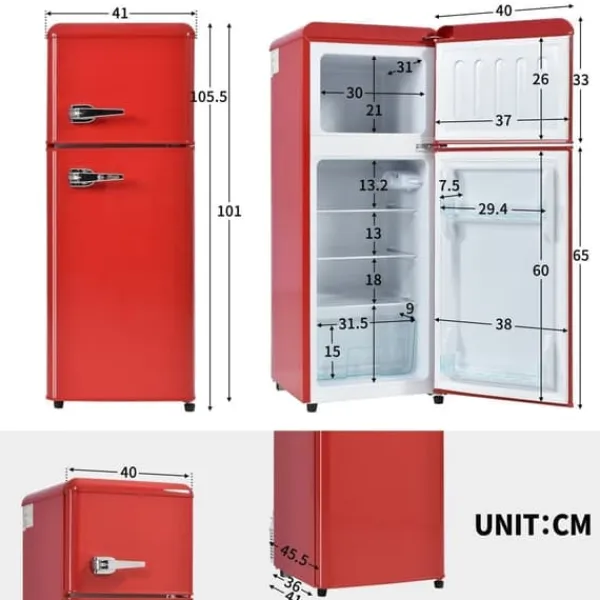 Dieser kompakte Retro-Kühlschrank mit Doppeltüren ist eine stilvolle und funktionale Lösung für kleine Haushalte oder als Backup-Kühlschrank. Mit einem Gesamtvolumen von 92 Litern, darunter ein 28-Liter-Gefrierfach und ein 64-Liter-Kühlfach, bietet er genügend Platz für Lebensmittel und Getränke. Der Kühlschrank ist energieeffizient, leicht anpassbar und ideal für begrenzte Räume.