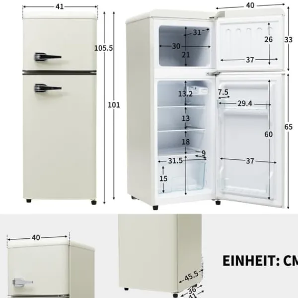 Dieser kompakte Retro-Kühlschrank mit Doppeltüren und einem Gesamtvolumen von 92 Litern kombiniert Effizienz mit stilvollem Design. Mit einem 28L Gefrierfach und einem 64L Kühlfach bietet er optimale Lagerung für Lebensmittel und Getränke. Die sieben Temperatureinstellungen und die hohe Energieeffizienzklasse D machen ihn zu einer flexiblen und umweltfreundlichen Lösung für Ihr Zuhause.