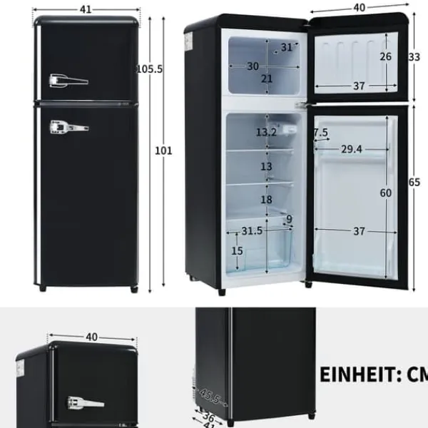 Dieser kompakte Retro-Kühlschrank mit Doppeltüren bietet eine hervorragende Lösung für kleinere Räume oder als Backup-Kühlschrank. Mit einem Gesamtvolumen von 92 Litern, darunter ein 28-Liter-Gefrierfach und ein 64-Liter-Kühlfach, sorgt er für effiziente Lebensmittelaufbewahrung. Die Energieeffizienzklasse D und sieben Temperatureinstellungen machen ihn zu einem praktischen und flexiblen Haushaltsgerät.
