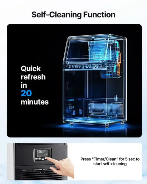 Den höga kapaciteten betyder att du kan hantera allt från familjemiddagar till mindre event utan att få isbrist. Med 32 kuber per körning fyller du snabbt hinkar och kylda drycker.