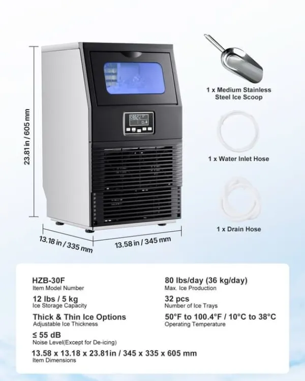 Kraftfull ismaskin för hem, bar och lätt kommersiellt bruk Denna fristående ismaskin levererar upp till 36 kg is per dygn och producerar 32 kuber per cykel. Med 5 kg inbyggd isförvaring, justerbar kubtjocklek och tydlig LED-styrning får du snabb, pålitlig och flexibel isproduktion för alla tillfällen.