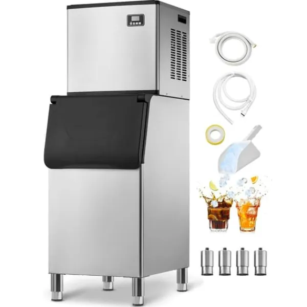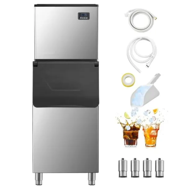 Den här kommersiella ismaskinen är idealisk för stor isproduktion med en kapacitet på 227 kg is per 24 timmar. Den har en imponerande isolering och kan lagra upp till 147 kg is för en kontinuerlig tillförsel.