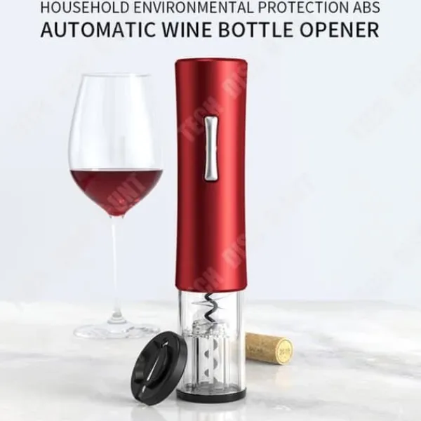 Upptäck den multifunktionella elektriska flasköppnaren TD® i röd. Med en modern och enkel design mäter den 18,5 x 4,5 cm och fungerar automatiskt med ett enkelt tryck på en knapp. Öppna dina vinflaskor enkelt och snabbt med detta praktiska verktyg.
