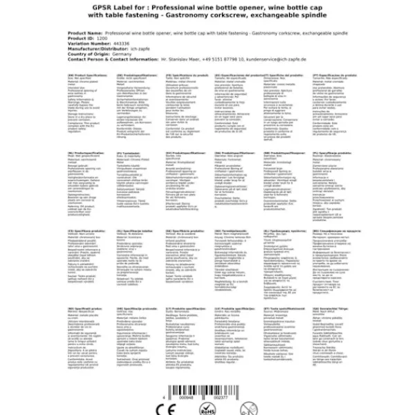 Korkskruv, Flasköppnare – Professionell Catering korkskruv, utbytbar dorn Med vår professionella vinflasköppnare kan du enkelt göra det irriterande jobbet att ta upp korken. Den solida, helt förkromade vinflasköppnaren är speciellt designad för användning inom catering, men är också idealisk för privat bruk. De viktigaste funktionerna i korthet: •Robust konstruktion för professionellt bruk •Bordstillbehör för bekväm och snabb avkorkning •Stor skruvklämma för ett säkert fäste på alla ytor •Utbytbar spindel för enkelt underhåll Professionell utrustning, optimala resultat Med den professionella flasköppnaren kan du öppna dina flaskor snabbt och exakt. Dess stabilitet, användarvänlighet och stora skruvklämma gör den till ett viktigt tillbehör för alla bartender eller vinkännare. Längd livslängd och reservdelar Tack vare den solida konstruktionen och användningen av högkvalitativa material som stål och plast är vår vinflasköppnare särskilt hållbar och robust. Om du behöver byta delar kan du enkelt byta ut chucken. Mångsidig i användning Vår vinflasköppnare är perfekt för användning i cateringbranschen och även för privata evenemang som fester eller fester. Bordsfästet säkerställer snabb och säker avkorkning, medan den professionella flasköppnarens iögonfallande design alltid väcker uppmärksamhet. Teknisk data •Mått (B x H x D): 150 x 160 x 250 mm •Vikt: 780 g •Material: stål och plast •Färg: silver Vår professionella flasköppnare är den perfekta hjälparen för varje krögare och vinälskare. Med sin solida konstruktion, enkla hantering och attraktiva design är den ett viktigt tillbehör för alla tillfällen. Beställ vår professionella vinflasköppnare nu och upplev hur lätt och precision det är att ta upp den!