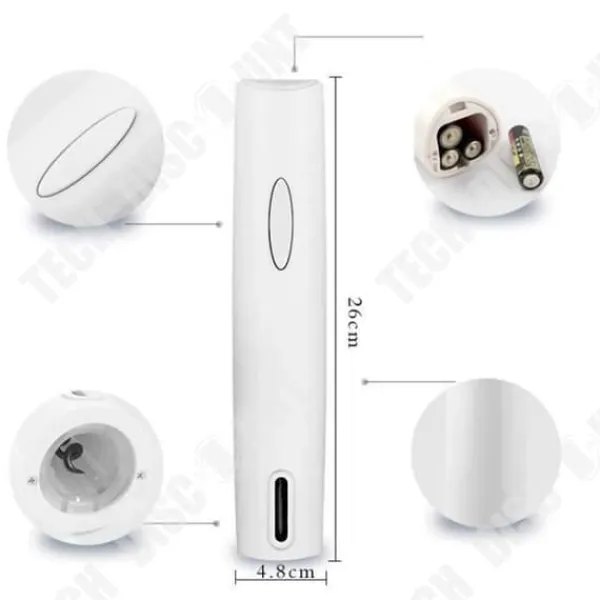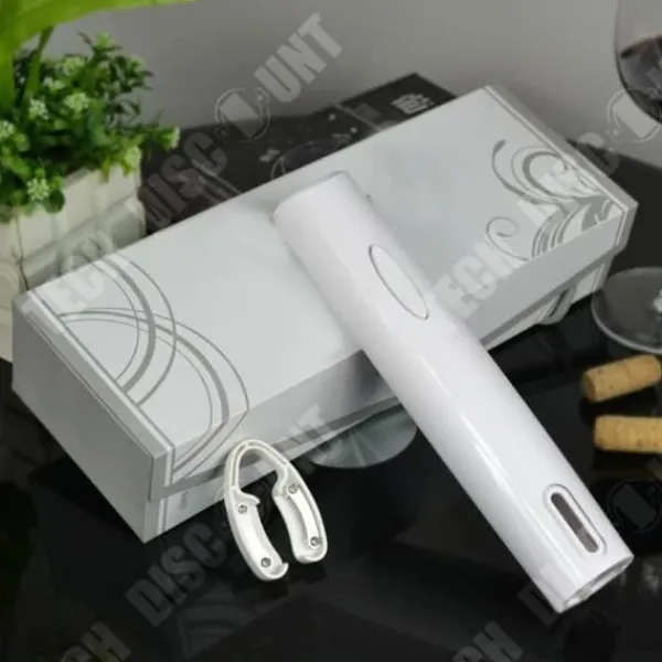 Produktnamn: Elektrisk korkskruv Kategori: FLASKÖPPARE FUNKTIONER Typ: Korkskruv Användning: Flasköppning Utseende: Förfinad Produktmått: 35,2 x 12,8 x 12,8 cm Färg: Vit Detta är en korkskruv