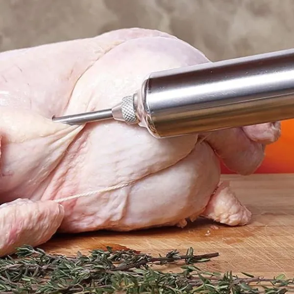 - 3 professionella nålar – för flytande, tjocka och örtbaserade marinader.