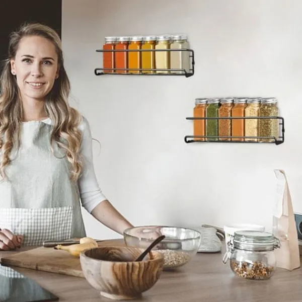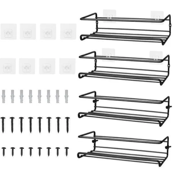 Organisera ditt kök med denna svarta metal kryddhylla, hållbar och elegant. Detta set med 4 kryddställ är enkelt att installera, vilket ger flexibilitet och stil. Mått: 6.0 x 29 x 6.0 cm. Perfekt för optimal förvaring, den passar alla typer av inredning.