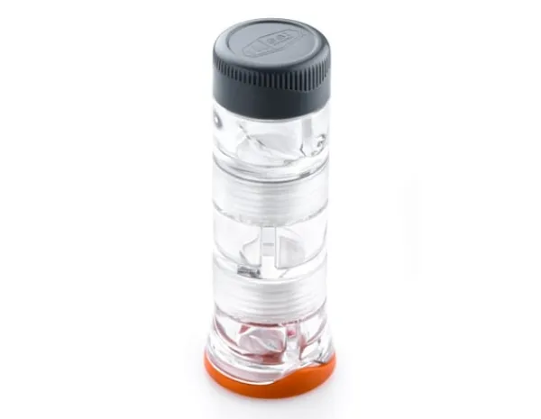 Spice Missile är en mycket praktisk kryddburk från GSI Outdoors med plats för sex olika kryddor. Kan antingen skruvas ihop till en enhet eller användas som 3 separata delar. Varje del plats för två krydoor, och har ett typiskt sil-lock på ovansidan och ett vanligt lock för påfyllning på botten.