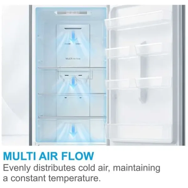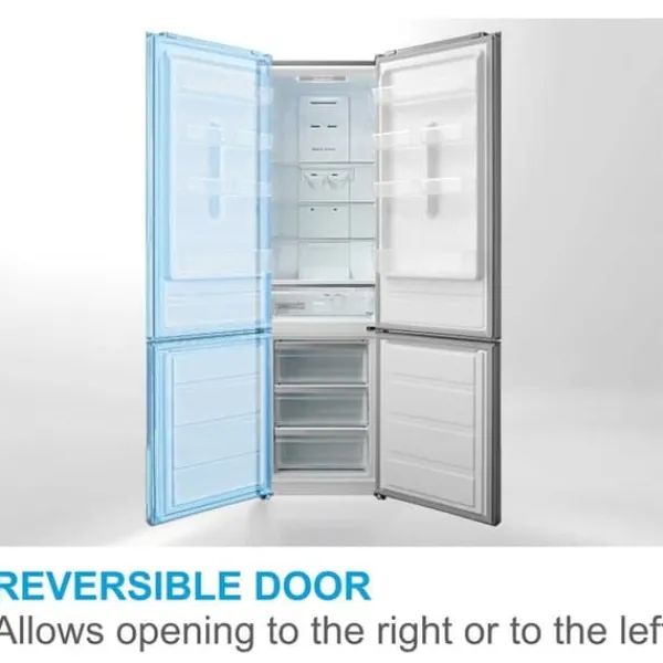 Kylskåpet Midea MDRB380FGE01A kombinerar avancerad teknik med noggrann design för att bevara matens färskhet och ge en bekväm användning. No Frost-systemet eliminerar isbildning, medan Super Cooling-funktionen snabbt kyler ner färska produkter. Med energiklass E får du hög prestanda med låg energiförbrukning. Den tysta driften och kapaciteten på 270 liter gör det till ett pålitligt val för hemmet.