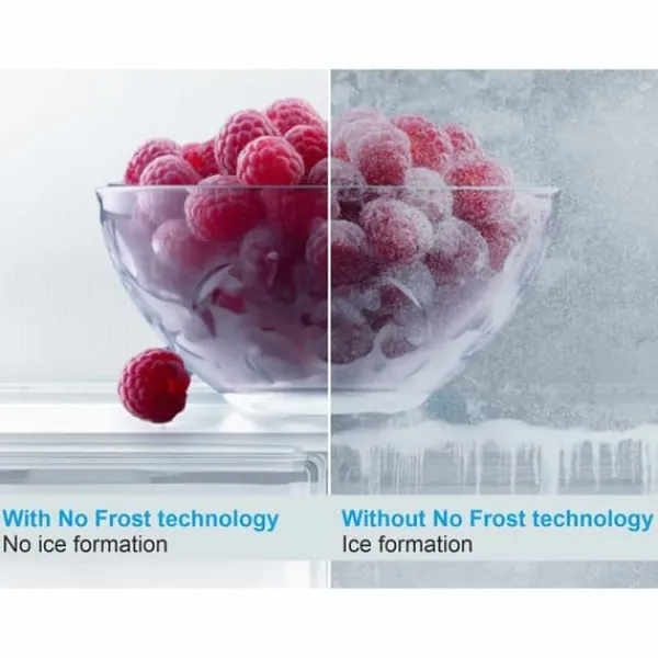 Tack vare Total No Frost-tekniken bildas ingen frost inuti kylskåpet, och du behöver aldrig mer frosta av det.