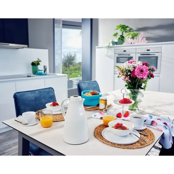 Hålla drycker varma i upp till 12 timmar och kalla i 24 timmar? Inga problem: Om du köper 1 l Harmonic termoskanna från Leifheit kommer du att dra fördel av optimal isolering. Den dubbelväggiga inre glasflaskan säkerställer detta. Eftersom modellen har en klassisk design passar den perfekt in i alla hushåll. För att hälla upp kaffe, te och liknande utan att droppa har kaffekannan en böjd pip. Detta förhindrar irriterande dropp. Skruvlocket är tätt och 100 procent tätt. Självklart är den isolerade kannan BPA-fri och kan därför användas utan bekymmer. Tack vare det ergonomiska handtaget är 1 l Harmonic termoskannan mycket lätt att hantera och gör upphällningen enklare. Den moderna kepsen är lätt att använda. Tryckknappens höjd visar om termosen är öppen eller stängd.