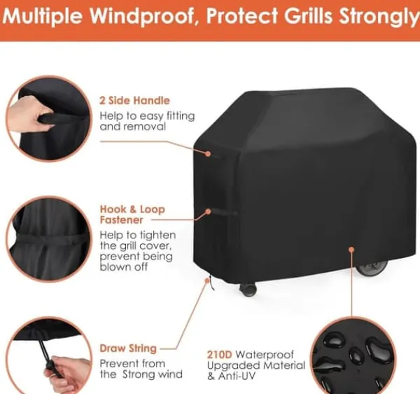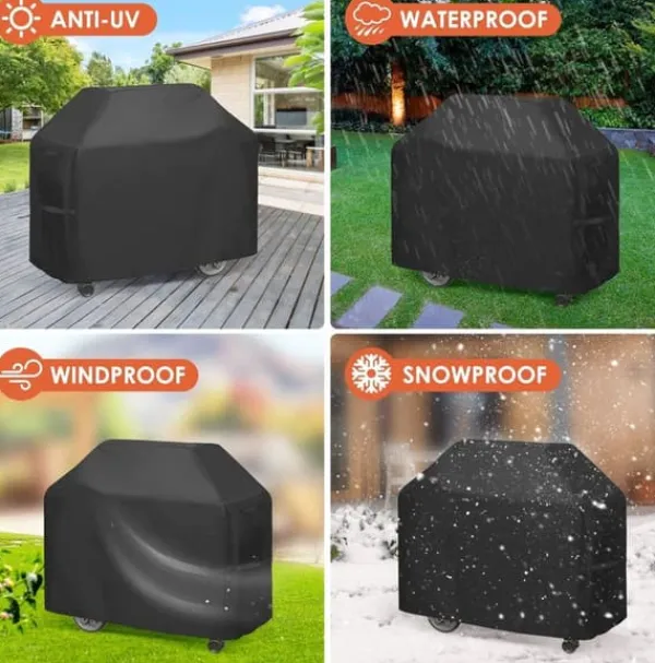 Väderbeständigt: Skyddar grillen mot regn, solskador och vind, förlänger dess livslängd.