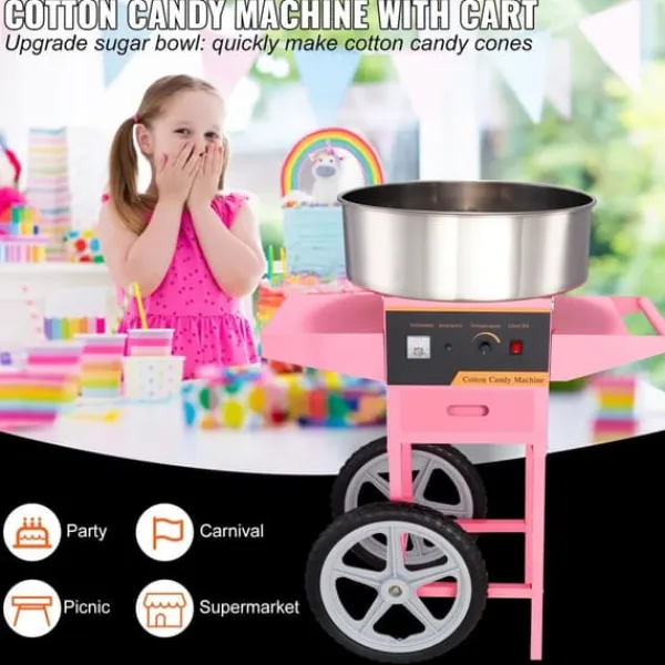 – Använd vilket godis du gillar: Denna marshmallowmaskin låter dig använda traditionella tandtrådsgodis, kolagodis, fruktbitar eller något hårt godis du gillar för att göra läckra marshmallows. Stora hjul och ett robust handtag gör den lätt att flytta, vilket gör den perfekt för karnevaler, festivaler, födelsedagsfester och sportevenemang.