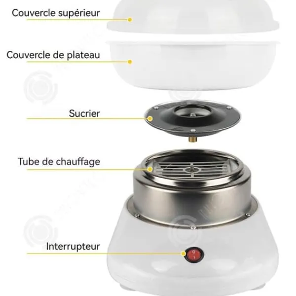 4. Elektrisk och effektiv: sockervaddsmaskinen kan startas med en enkel knapptryckning, med snabb produktion och ingen komplicerad drift som krävs. Du kan förbereda läcker sockervadd på bara några minuter, vilket sparar tid och ansträngning.