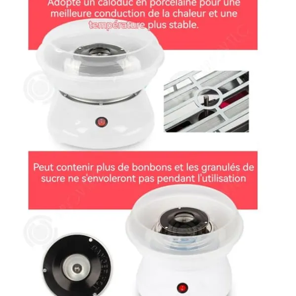 2. Bärbar och lämplig för hemmabruk: sockervaddsmaskinen är liten och lätt, med en kompakt struktur, och kan enkelt placeras i köket eller vardagsrummet. Den låter dig göra sockervadd när som helst, var som helst, och njuta av en interaktiv och rolig familjeupplevelse.