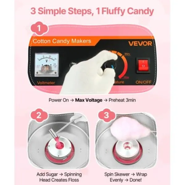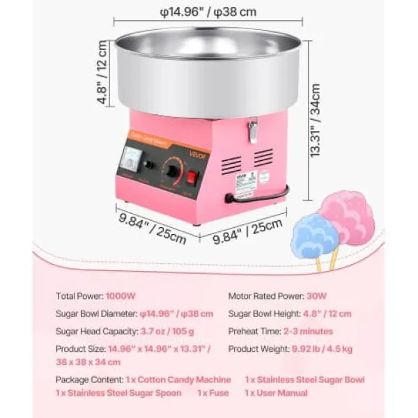 Skapa läcker sockervadd hemma eller till fester med denna lättanvända kommersiella sockervaddsmaskin. Med ett kraftfullt värmesystem, enkla kontroller och snabb rengöring är den perfekt för födelsedagar, familjesammankomster och mindre evenemang. Den hållbara konstruktionen och den mångsidiga kompatibiliteten med olika sockertyper gör den lämplig både för nybörjare och frekvent användning.