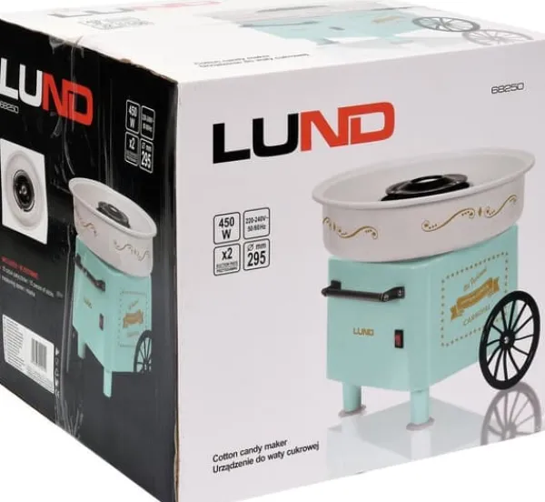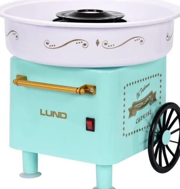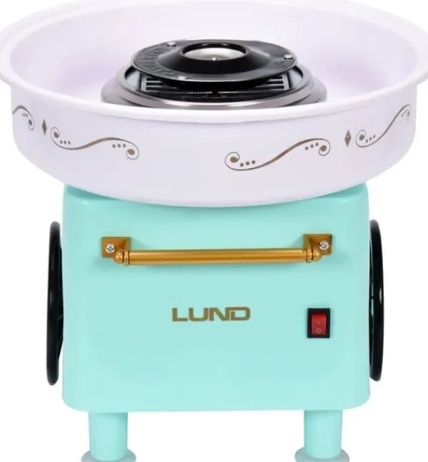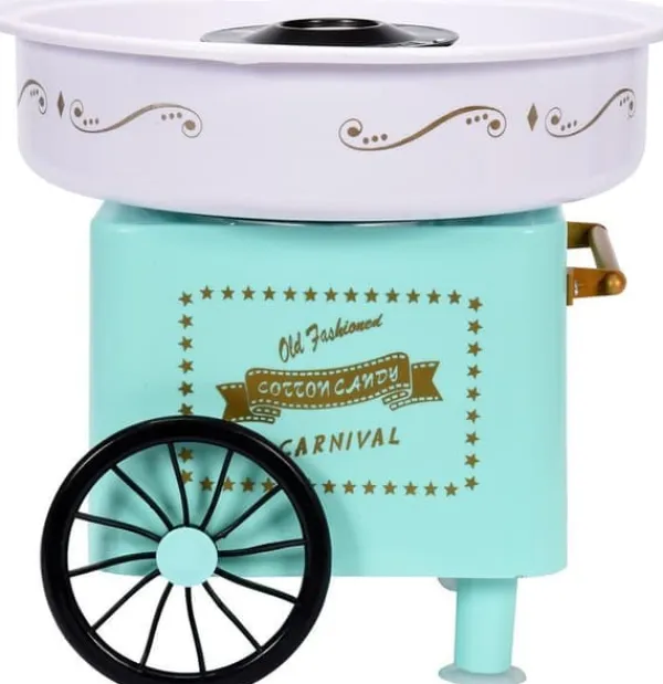 Tekniska data: Effekt: 450W Strömförsörjning: 220V-240 50/60Hz Skåldiameter: 29,5 cm Värmetyp: halogen Material: PP, rostfritt stål #304 Tål maskindisk Halkfria fötter säkerställer stabilitet Unik mintfärg. Enhetens mått: 29,5 x 29,5 x 27 cm (längd x bredd x höjd) Den vagnformade sockervaddsmaskinen är en utmärkt idé för att överraska de små. Söt sockervadd är perfekt för både ett födelsedagskalas och en dessert efter middagen. Genom att tillsätta karamellfärg kan du färga sockervadden i valfri färg. Tack vare den fina förpackningen och den unika formen är det en perfekt present. INGÅR: sked för att mäta upp lämplig mängd socker **