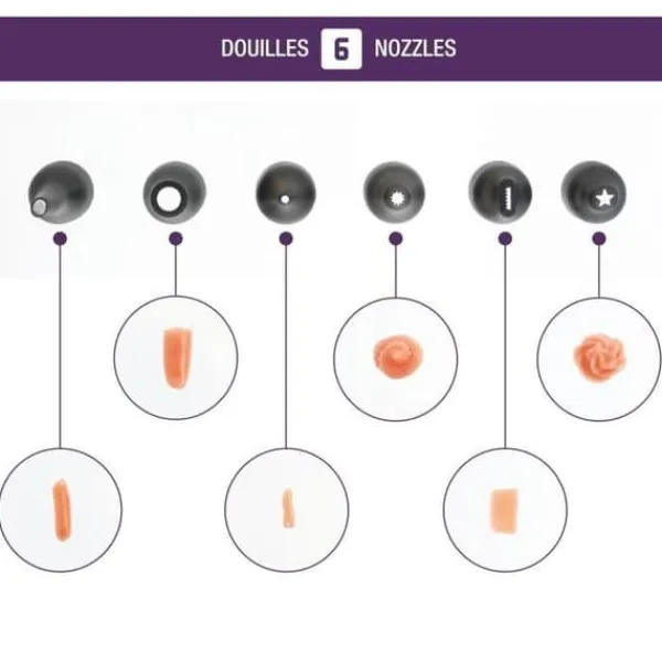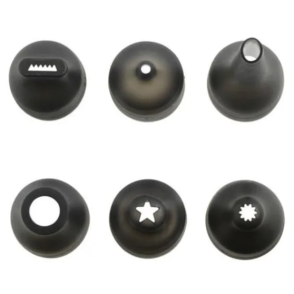 Pipset – Svart – För att göra makroner, dekorera cupcakes och fylla puffar – Innehåller: 1 500 ml spritspåse, 1 1 L spritspåse, 1 hållare, 6 munstycken, 1 tång och 1 flaskborstrengöring – Hållaren låter dig fylla spritspåse och håll alla delar av setet inom bekvämt räckhåll.