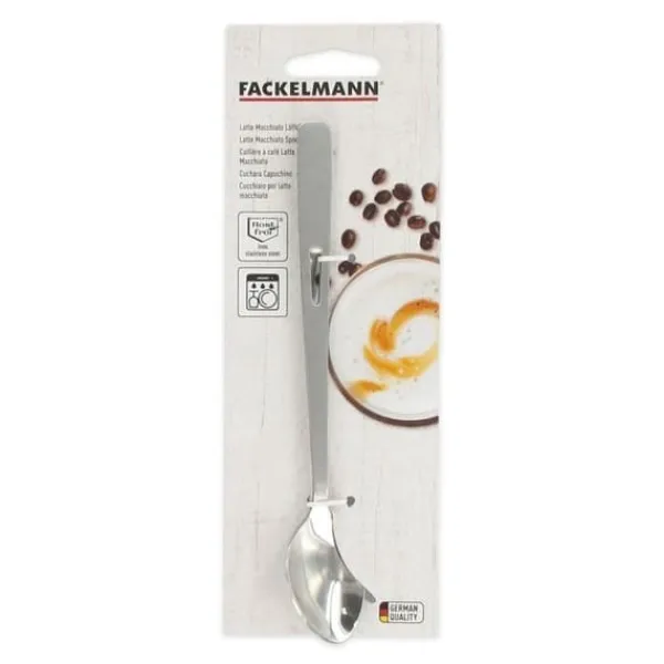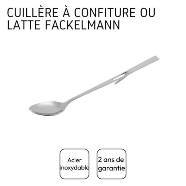 BESKRIVNING: Fackelmann erbjuder denna 2-i-1 sked i rostfritt stål. Vår sked är lång och gör det möjligt att skrapa botten av burkar med pålägg eller sylt. DET LILLA PLUSSET: Denna sked är perfekt för att servera en Latte Macchiato till exempel eller en glasskål, eftersom den med sin lilla krok hänger på kanten av koppen eller skålen. SAMMANSÄTTNING: Rostfritt stål. DIMENSIONER: 19 cm. INNEHÅLL: 1 lång 2-i-1 sked. Fackelmanns sylt-sked är mycket speciell men framför allt praktisk. Denna sked har ett långt handtag som gör att du enkelt kan nå botten av syltburkar. Dessutom finns det en krok mitt på handtaget som verkar perfekt för att hänga skeden vertikalt på en cappuccino-kopp, en glasskål, en yoghurtburk eller en burk med pålägg eller sylt. Denna sylt-sked är alltså det perfekta köksredskapet för dina frukostar, mellanmål, crêpe-fester osv. Fackelmann Frankrike är ett företag som specialiserat sig på distribution av köks- och bakredskap samt bakformar och ugnsplåtar. Företaget försöker göra matlagningen enklare för alla genom sina smarta redskap. Fackelmanns köksredskap erbjuds till alla typer av kockar för enkel och daglig användning. Vispar, spacklar, skopor, grönsaksskalare, skärbrädor och mycket mer står till din förfogande för att förbereda läckra och alltid mer originella recept.