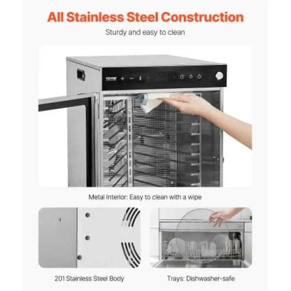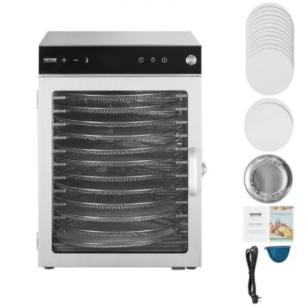 Denna roterande matdehydrator erbjuder effektiv och jämn torkning för ett brett utbud av ingredienser, bevarar näringsämnen och smak utan behov av ständig övervakning. Med stor kapacitet, hållbar konstruktion i rostfritt stål och användarvänliga digitala kontroller är den idealisk för att förbereda jerky, torkad frukt, grönsaker, örter och hundgodis hemma. Det synliga fönstret och tyst drift gör det bekvämt och enkelt att övervaka torkningsprocessen.