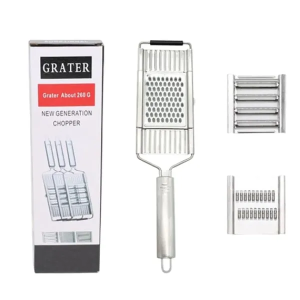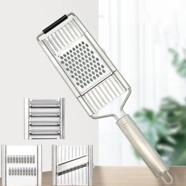 Multifunktionell design: Detta mångsidiga set innehåller ett rivjärn, en skärare och en julienneskalare, vilket ger dig flera skäralternativ i ett praktiskt paket. Ta itu med en mängd olika köksuppgifter med lätthet.