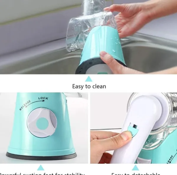 Notera: Rivjärnen är mycket vassa, var försiktig när du plockar isär och diskar dem. Detta köksredskap ska inte användas av barn. Placeras på en fast och jämn yta för att sugkoppen ska fästa ordentligt.