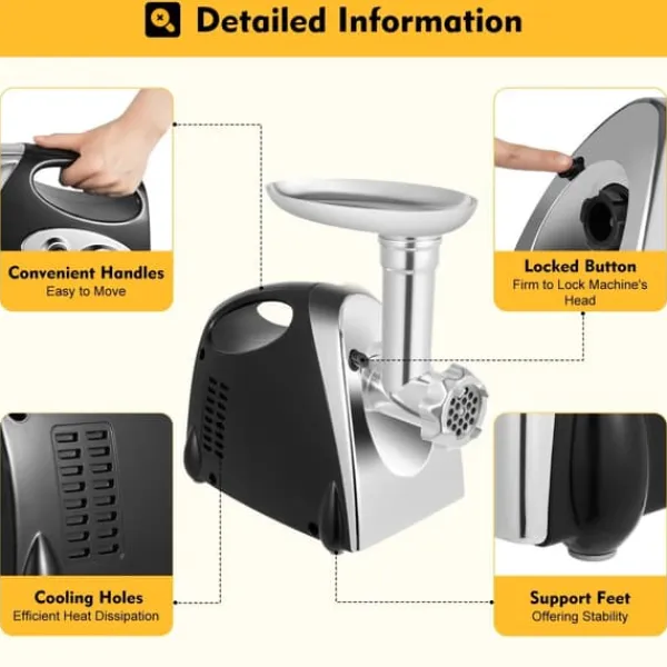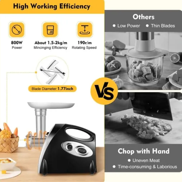 - Mångsidig: mal kött, gör korv, kibbeh och nudlar