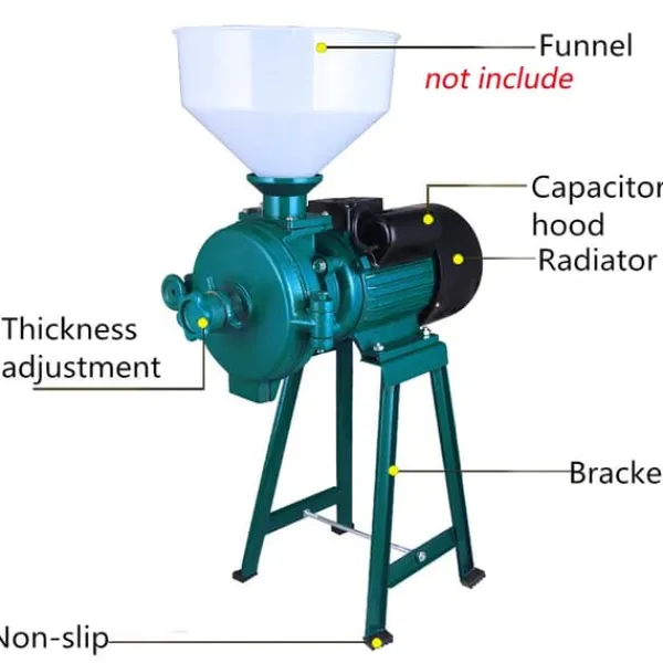- Kapacitet (ca): Majs ≥60 kg/h, Ris ≥75 kg/h, Vete ≥75 kg/h, Paddy-ris ≥50 kg/h; Förfining: Sojabönor ≥50 kg/h, Ris ≥50 kg/h