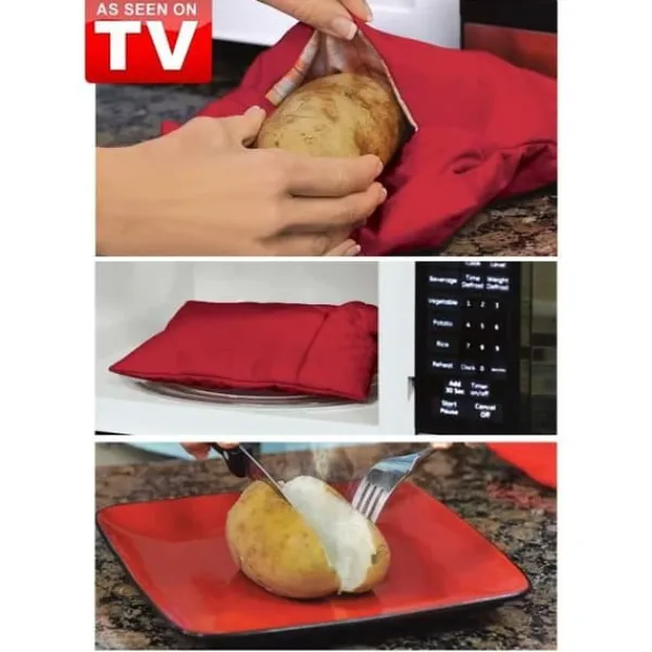 Patato Express-matlagningspåsen låter dig tillaga upp till 4 potatisar i mikrovågsugnen på bara 4 minuter. Tack vare sin unika isolering skapar den perfekt ånga för mör och fluffig potatis. Återanvändbar och maskintvättbar, det är den snabba och enkla lösningen för välsmakande måltider!