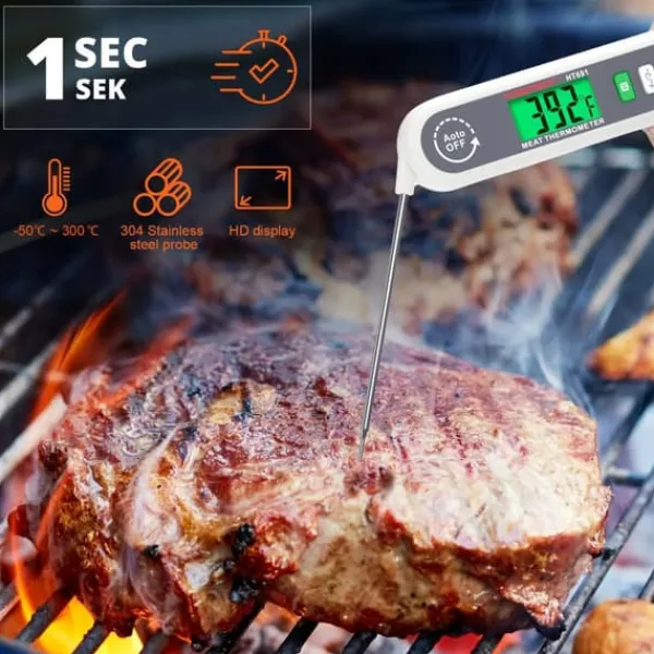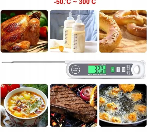 Med den här enheten kan du exakt kontrollera temperaturen på den beredda maten. måltider av dig. Den är idealisk för att mäta temperaturen på kött, kakor, vätskor och andra livsmedel och drycker.