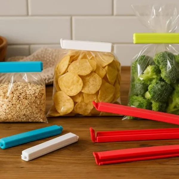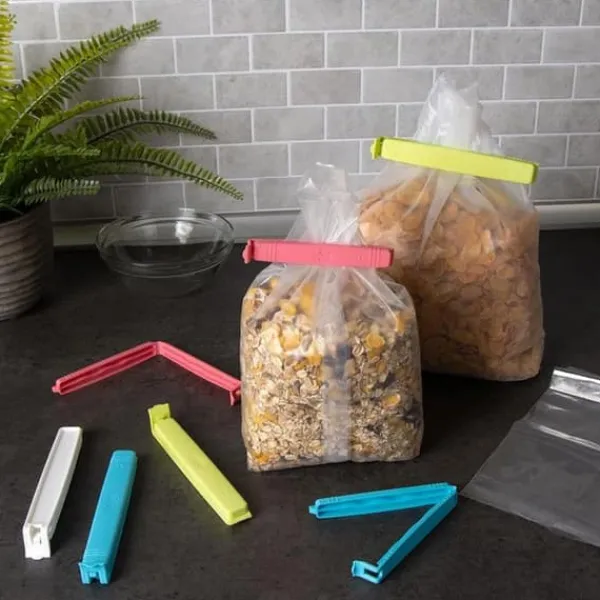 Det här setet med 18 flerfärgade livsmedelsklipp i olika storlekar är den perfekta lösningen för att försluta dina påsar tätt. Återanvändbara, hållbara och enkla att använda, de är perfekta för att bevara färskheten hos dina produkter varje dag.